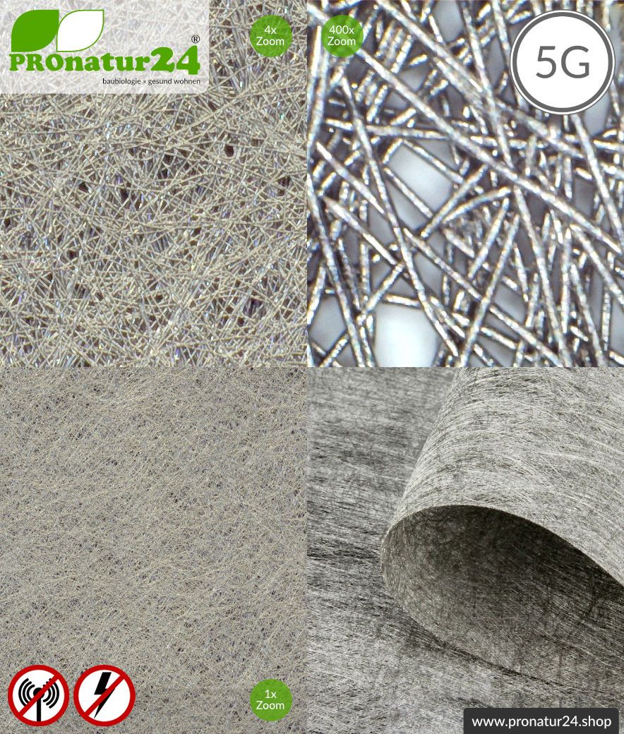 Dieses metallisiertes Nylonvlies hat eine enorme Schirmdämpfung von bis zu 80 dB und ist gedacht als Tapete oder zur losen Verlegung im zB. Holzbau.