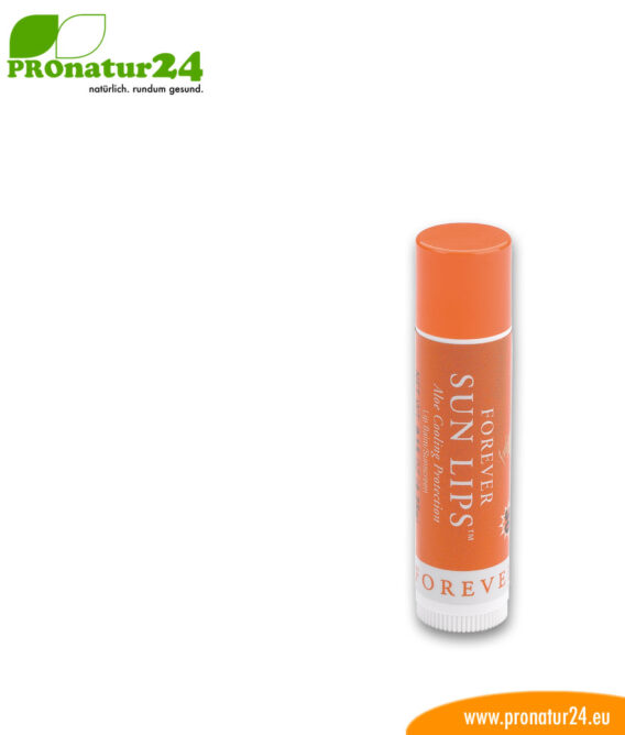Schützen Sie Ihre Lippen vor Sonnenbrand, Wind und Kälte! FOREVER Sun Lips ist ein verwöhnender Lippenbalsam mit Lichtschutzfaktor 20, der die Widerstandsfähigkeit der Lippen stärkt und sie mit einem Hauch von Minze gleichzeitig kühlt und erfrischt. Das Feuchtigkeit spendende Jojobaöl und die Geschmeidigkeit der Aloe Vera runden diesen einzigartigen Stick ab.