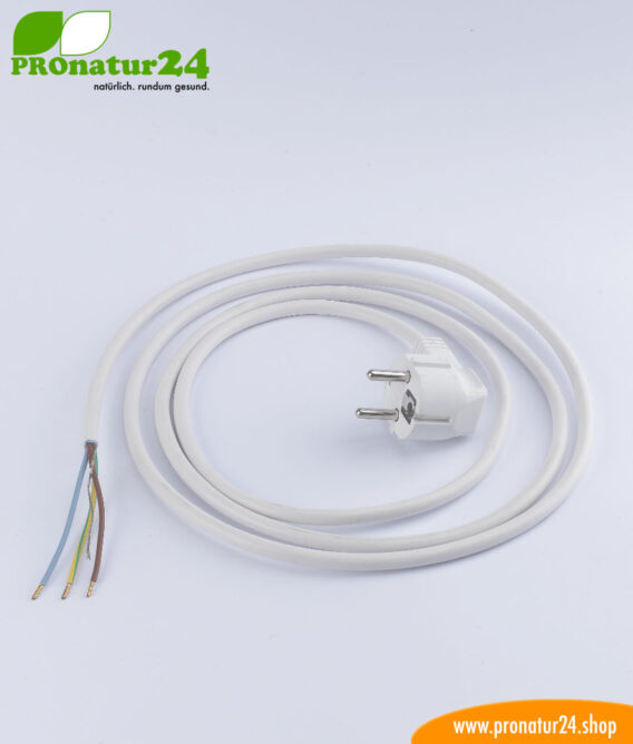 Geschirmtes Elektrokabel mit Schuko Stecker und freiem Ende | weiß