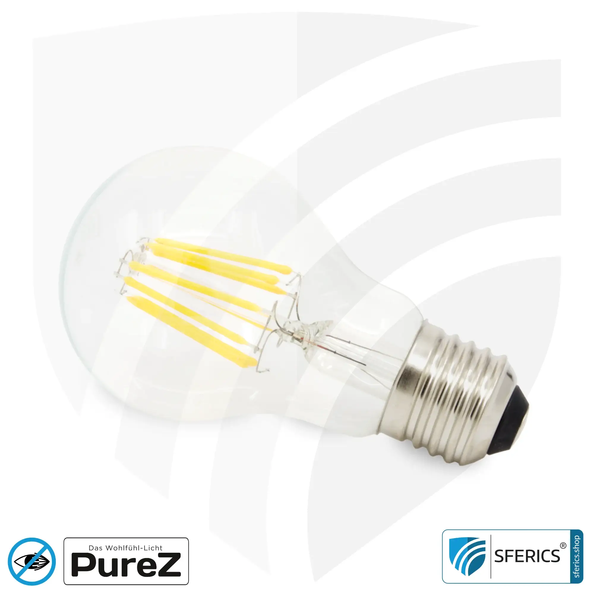 8,2 Watt LED Filament Pure-Z NEO mit E27 Sockel. Ein naturnahes Wohlfühl BIO LICHT mit einer unglaublichen Farbwiedergabe CRI 97 und nahezu “flimmerfrei”. Verfügbar in Klarglas und Mattglas. Nicht dimmbar.