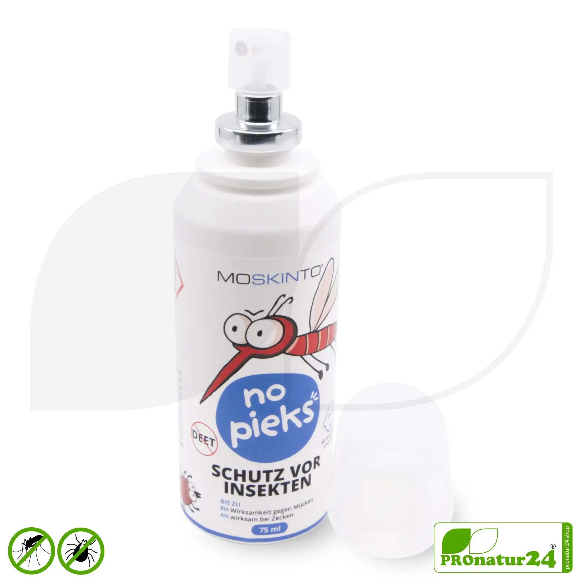 Wer einen zuverlässigen Schutz vor Mückenstichen sucht, findet in Moskinto no pieks eine langanhaltende Lösung. Das Spray bietet bis zu 8 Stunden Schutz vor Mücken und bis zu 4 Stunden Schutz vor Zecken. Es kann außerdem helfen, Stiche von Mückenarten zu vermeiden, die Krankheiten wie Malaria, Zika oder Dengue übertragen können.