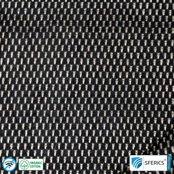 NEW ANTIWAVE OC Abschirmstoff in schwarzer Ausführung. Produziert aus Organic Cotton, sprich Baumwolle aus kontrolliert biologischem Anbau, welches mit modernster Technik mit Polyamid und Silber kombiniert wurde.