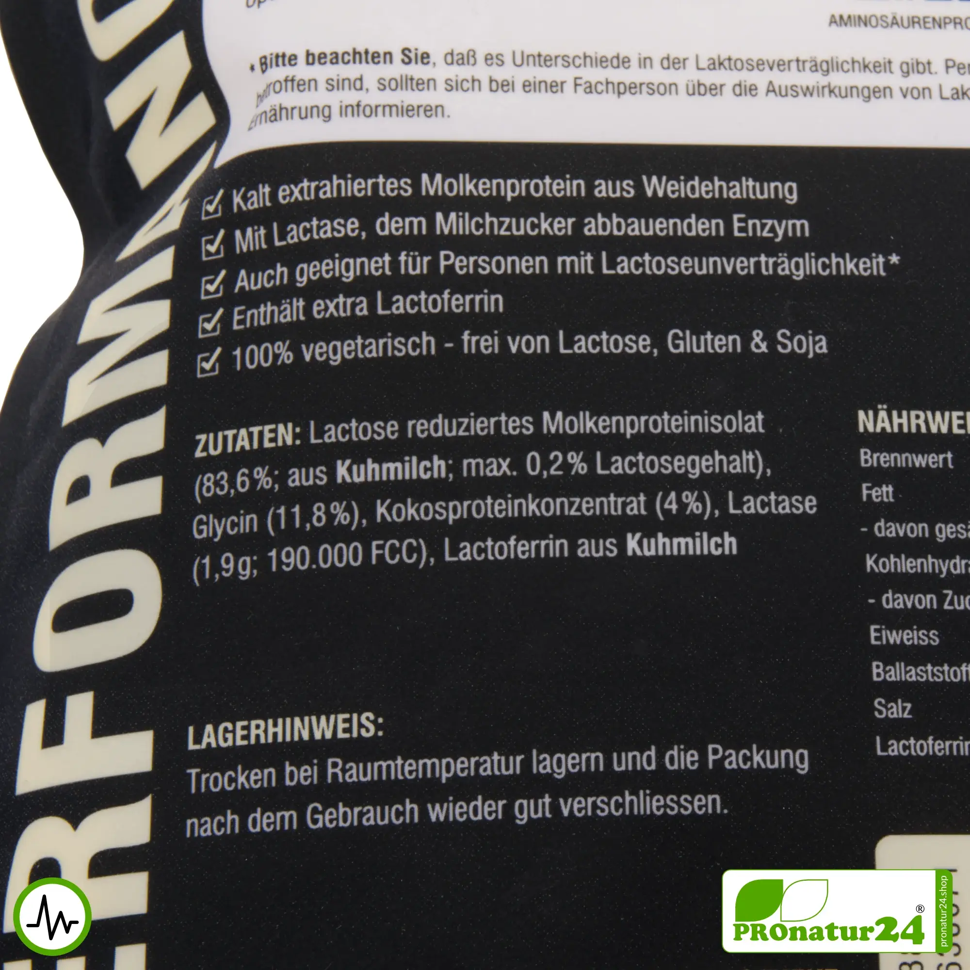 Hergestellt aus Milch von Weidekühen aus nachhaltiger Landwirtschaft, überzeugt unser Premium Whey durch seine sorgfältige Verarbeitung und natürliche Reinheit. Es ist frei von Zucker, Süssungsmitteln und künstlichen Zusätzen ist. Es ist laktosefrei und dank der zugesetzten Lactase besonders gut verträglich und leicht verdaulich.
